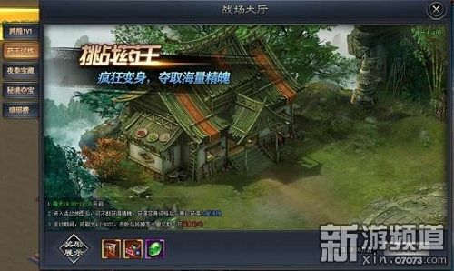 戰(zhàn)場(chǎng)大廳是8090瑯琊榜之風(fēng)起長(zhǎng)林中備受眾多玩家喜愛(ài)的,其中包含了多種精彩活動(dòng),如藥王試煉、夜秦寶藏、秘境奪寶等等。藥王試煉活動(dòng)在每天的19:00開(kāi)啟,玩家進(jìn)入活動(dòng)地圖后可不斷獲取精魄,活動(dòng)期間將刷新3只BOSS,擊殺BOSS的玩家可獲得變身資格,變身后更可獲得5-10倍精魄?;顒?dòng)進(jìn)行20分鐘后將在地圖刷新藥王BOSS,擊敗后可掉落大量獎(jiǎng)勵(lì)及專屬稱號(hào)。