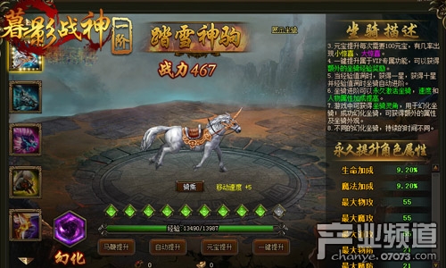 英雄上陣殺敵,橫刀立馬,雄姿英發(fā),除了擁有超群的能力外,胯下的坐騎也是響當(dāng)當(dāng)?shù)拇嬖?蘿卜玩《暮影戰(zhàn)神》贈你踏雪神駒,助你一統(tǒng)江湖??刹灰】醋T系統(tǒng),它不僅是一個拉風(fēng)的存在,更可以提高角色的移動速度,為角色帶來戰(zhàn)力的加成。提升坐騎還能偶遇小驚喜,一起來看下吧!