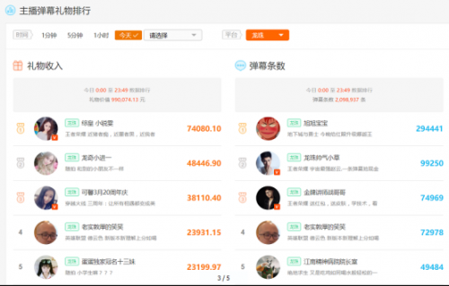 昨日,一則“54萬天價禮物登頂全平臺榜首,叫板王思聰”的新聞引發(fā)了業(yè)內(nèi)和無數(shù)網(wǎng)友的關(guān)注。為了博得龍珠王者榮耀主播綜皇銳雯的關(guān)注,兩位土豪在三小時內(nèi)互砸共54萬,創(chuàng)造了PC端單天直播數(shù)據(jù)新高。就在所有人感到震驚的時候,其中一位土豪又按耐不住發(fā)起了沖擊。昨日他用自己的小號繼續(xù)狂送禮物,近百條的神龍幾乎霸占了整個龍珠,讓服務(wù)器一度產(chǎn)生巨大延遲。