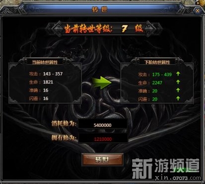 轉(zhuǎn)生分成為15個等級,等級越高可以獲得更多的各項屬性加成,極大程度地提升了角色的戰(zhàn)斗力。 每個轉(zhuǎn)生等級均有相對應(yīng)的轉(zhuǎn)生裝備,不僅擁有比普通裝備更為華麗的外形,更會有十分強大的屬性。