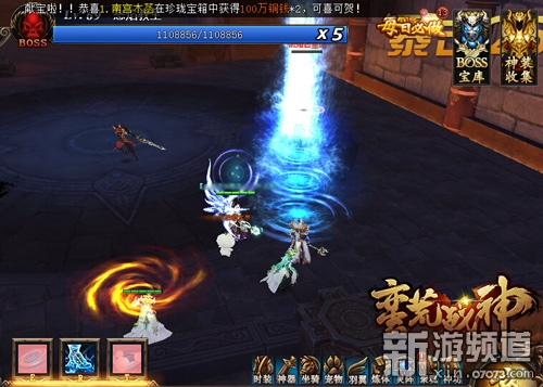洪荒大陸驚現(xiàn)神魔秘寶,奪寶奇兵熱血出擊,新一輪奪寶大亂斗火爆開啟!奪寶者需要合力擊殺守護(hù)寶藏的BOSS,BOSS死亡3分鐘后,玩家可以憑借實力搶奪BOSS掉落的神魔秘寶。雖然最終奪得寶箱的勝利者只有一個,不過其他參戰(zhàn)者同樣也有不小的收益,每天前8次參加即可獲得排名獎勵,隨后還能獲得人品寶箱,考驗RP的時刻到了!
