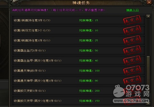 關(guān)于蘿卜玩《炎龍傳奇》神魂的獲取方式,這里有著最詳盡的記載。每日可以通過多達20個以上的任務(wù)來兌換神魂,比如:收集1轉(zhuǎn)首飾任意3件可以兌換神魂15個、收集1轉(zhuǎn)符文任意3個可兌換神魂10個…收集通天神甲(男女)任意1件可兌換神魂80個,越到后面的任務(wù)也就越具挑戰(zhàn)性,同理獲得的神魂的個數(shù)將非常高。