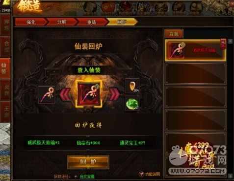 回爐對(duì)象只能為重鑄后的仙裝。
