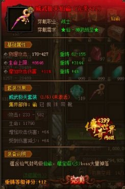 高級(jí)仙裝(神武宗師、幻神法圣、羅天真人仙裝以上)也可重鑄到完美 品質(zhì),獲取更強(qiáng)力的屬性,但無法進(jìn)階。