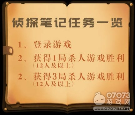 活動(dòng)內(nèi)容:活動(dòng)期間,玩家每天分別完成以下任一任務(wù)即可獲得一份“偵探筆記”,每日最多可領(lǐng)取3份“偵探筆記”。
