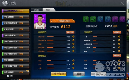 1k2k《職業(yè)籃球經(jīng)理》特訓可以將改球員的技能和技巧更加的強化,點擊相應的屬性可以增加其對應能力的屬性值。