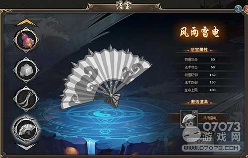 五件法寶基本屬性相同,隨著玩家等級(jí)的提升,完成指定任務(wù)或達(dá)到某些指定成就可激活法寶,通過(guò)洞天福地副本的試煉可獲得升級(jí)法寶的必需品來(lái)提升法寶的等級(jí)。每提升一級(jí),可以得到大量的屬性加成,最直觀的表現(xiàn)就是你的戰(zhàn)力又提升了一大截。法寶最高暫時(shí)可提升至80級(jí),這需要的就不是人民幣玩家的資本,而是需要大家對(duì)于《鎮(zhèn)魂街》這款游戲的執(zhí)著的追求。有時(shí)候光光靠這些還不夠,風(fēng)雨雷電法寶的出處很特別,只能出現(xiàn)在密藏任務(wù)中賊王的身上。這就需要大家日積月累了!