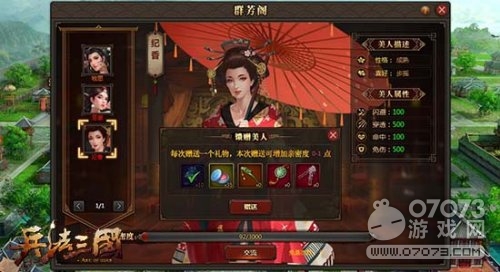 在群芳閣中,玩家每日可以免費與任意一位美人進(jìn)行交流,交流可以提升1點親密度。當(dāng)然,富裕的領(lǐng)主還贈禮給佳人,香囊、胭脂、發(fā)釵、玉佩、步搖等等禮品,選擇美人心儀的禮品贈送可以獲得大量親密度。