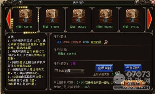既然是任務(wù)挑戰(zhàn),當(dāng)然就具備一定難度。不會像以往那些任務(wù)的兒戲,全新天書任務(wù)是充滿挑戰(zhàn),激發(fā)出你前所未有的潛能,完成看似不可能的難度任務(wù)。天書會機(jī)智 地以大家實力劃分等級,按照實力不同給予不同星級的任務(wù)。比如49級前只能接受十星以下的任務(wù),而突破50級就能挑戰(zhàn)十五星任務(wù),至于二十星任務(wù),則是留給60級的強(qiáng)者。