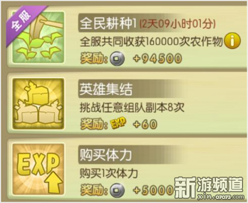 每日任務(wù)讓你的葫蘆更快成長,玩家在到達一定等級時系統(tǒng)會開通每日任務(wù),每日任務(wù)都可以免費完成,也可以花費20元寶直接完成,當(dāng)全服任務(wù)完成后你還可以獲得大量的銀幣獎勵,但是全服任務(wù)需要更多人來完成,帶上你的好友一起拯救葫蘆山!