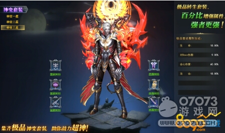 只要玩家轉身神變之后,就會開啟神變套裝,這個是只有神變之后的玩家才可以穿戴的裝備,那么無疑是給玩家的戰(zhàn)力提供了一波強心劑,神變套裝有3個檔次,分為一、二、三星,每個星級的外觀也是不一樣的,再增加戰(zhàn)力的同時,外觀也是變得非常的酷炫。