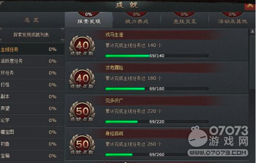 游戲中的成就系統(tǒng)共設(shè)有四大類:探索發(fā)現(xiàn)、戰(zhàn)力養(yǎng)成、競技交互、活動及其他。每完成一個成就,將獲得一定的成就點數(shù)和人物屬性。完成特定的成就還將獲得炫酷的成就稱號,每個稱號都帶有獨特的屬性并可進(jìn)行裝備,最多可同時裝備3個稱號。