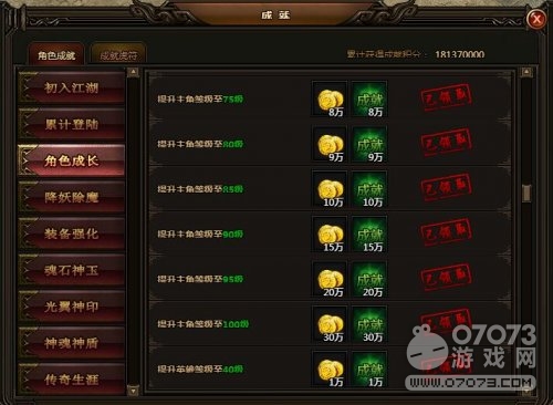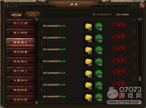 提升主角等級(jí)至75級(jí)??色@金幣8萬,成就積分8萬。
