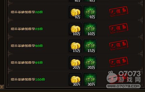 提升主角等級(jí)至100級(jí)??色@金幣30萬,成就積分30萬。
