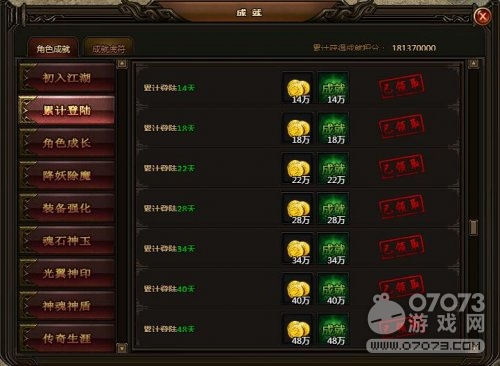 累計(jì)登陸48天,可獲金幣48萬(wàn),成就積分48萬(wàn)。