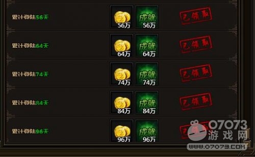 累計(jì)登陸5天,可獲金幣5萬(wàn),成就積分5萬(wàn)。