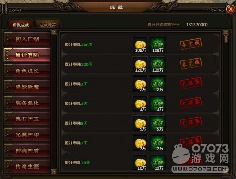 累計(jì)登陸108天,可獲金幣108萬(wàn),成就積分108萬(wàn)。