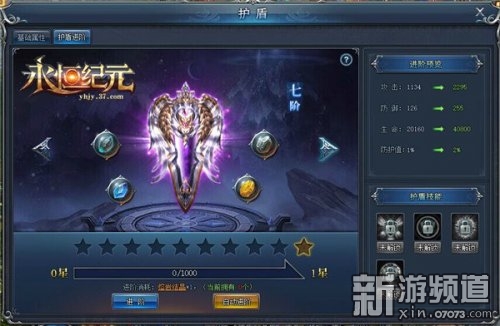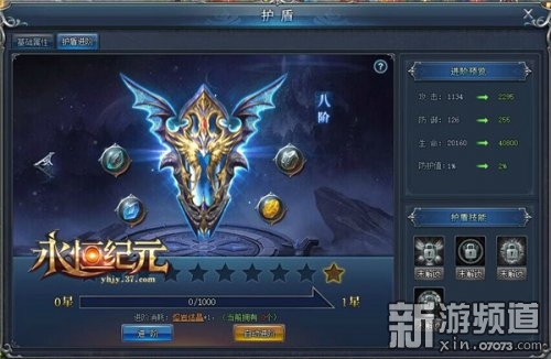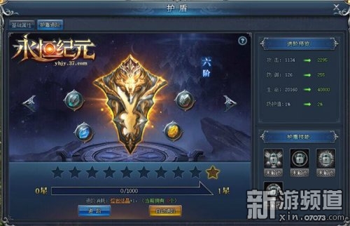 護盾并不局限于一開始的抵消能力,它還可以升級,成為更強的護盾,在37《永恒紀元》頁游版中,玩家可以通過擊殺310級以上的怪物,獲得大量的護盾經(jīng)驗,消耗護盾經(jīng)驗則可以升級護盾,提高護盾系統(tǒng)的攻擊、防御、血量、護盾值。
