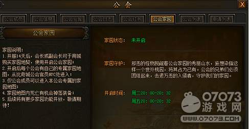 開啟公會家園中玩家就可以進入到私家花園了。也是公會尊享的一種玩法。公會家園在每周二和周五的時候都可以有大量的怪物入侵到公會家園的。