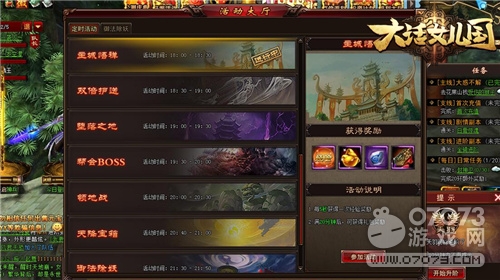 《大話女兒國》的“活動大廳”里會有一些定時(shí)活動,可以提供玩家大量的經(jīng)驗(yàn)收益,如:主城悟禪、雙倍護(hù)送、五倍殺怪,這三大活動一定要準(zhǔn)時(shí)參加,因?yàn)槌私?jīng)驗(yàn)還可以獲得大量實(shí)用道具。