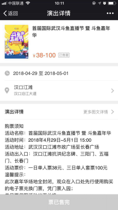 3月28日,斗魚直播官方微博公布了首屆國(guó)際武漢斗魚直播節(jié)的售票信息,并開始一個(gè)月倒計(jì)時(shí)。水友們心心念念的這一天終于要到來了!