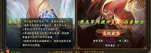 想要獲得高級(jí)獻(xiàn)祭就必須要有神之祭品或者魔石,神之祭品需要3個(gè),魔石則需要98顆。相比之下,普通獻(xiàn)祭最高等同提升12%的傷害輸出,傲天魔域永恒高級(jí)獻(xiàn)祭最高等同提升33%的傷害輸出,完全是兩個(gè)不同的概念。