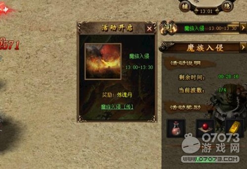 成功守衛(wèi)主城的勇士將獲得一小時(shí)的附加屬性BUFF。傲天攻沙每日魔族入侵從中午的1點(diǎn)開(kāi)始,短短半個(gè)小時(shí)你將經(jīng)歷生死存亡的考驗(yàn)。魔族入侵開(kāi)始,系統(tǒng)會(huì)在江湖上用千里傳音告知各位勇士,趕緊回到主城抵御魔族的入侵。成功抵御魔族入侵的勇士,可以獲得大量的獎(jiǎng)勵(lì),日常熟知的煉魂丹,當(dāng)然還有金條等其他獎(jiǎng)勵(lì)。