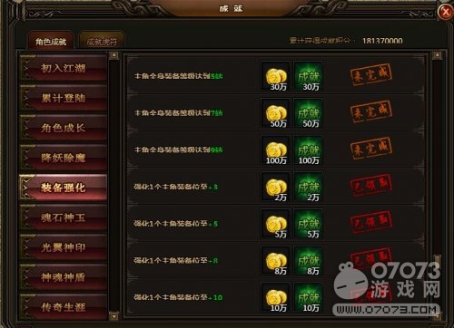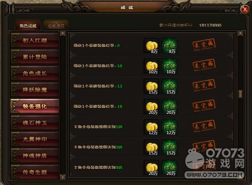 強(qiáng)化1個(gè)主角裝備位至+8。可獲金幣8萬,成就積分8萬。