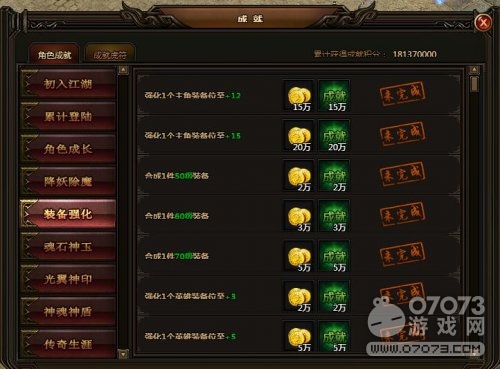 強(qiáng)化1個(gè)主角裝備位至+12。可獲金幣15萬,成就積分15萬。