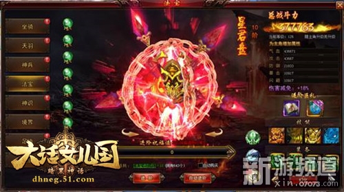 天象異變,星宿混沌,怪力亂神,橫行世間。與此同時(shí),大量天星神魂脫離命星流落人間。正義的戰(zhàn)士,想要推翻這虛偽的統(tǒng)治,還人間一個(gè)安寧,快來51《大話女兒國》化身神將,與妖魔一戰(zhàn)高低!打開神將面板,選中神將點(diǎn)擊出戰(zhàn),可同時(shí)出戰(zhàn)天地神將各一個(gè)。待神將附身,即可進(jìn)行神將變身,釋放神將技能,神將技能不僅華麗炫酷,并且威力極大!神魂脫離命星之時(shí),消耗能量過多,可通過神將進(jìn)階的方式,助其恢復(fù)到最佳狀態(tài)!有如此神將助一臂之力,推翻暴力統(tǒng)治,指日可待!