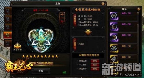 寶物系統(tǒng)是9cb《霸王之心》中的全新玩法,在寶物系統(tǒng)中,玩家可以對護(hù)盾、魂玉、官銜、暗器、足跡五種寶物進(jìn)行養(yǎng)成。