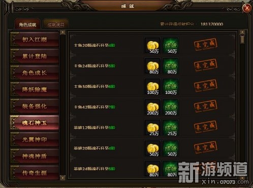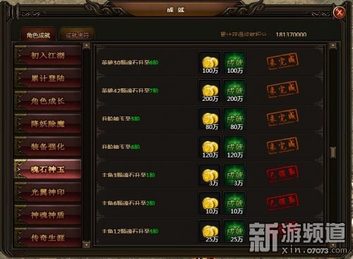 主角3顆魂石升至1階,可獲金幣3萬(wàn),成就積分3萬(wàn)。