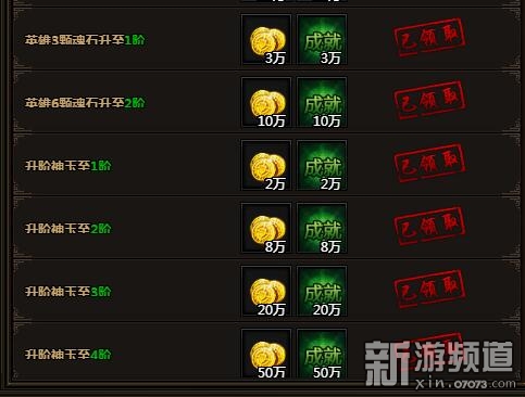 升階神玉至4階,可獲金幣50萬(wàn),成就積分50萬(wàn)。