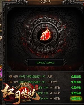 每天登入獎勵會送5個經(jīng)驗玉,經(jīng)驗玉贊滿之后含有大量經(jīng)驗,只要成為VIP即可免費領取大量經(jīng)驗獎勵,VIP等級越高獲得的經(jīng)驗越多,充值1000元寶即可成為VIP1.