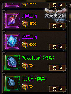 三階重生裝備可免費(fèi)開(kāi)啟棱彩寶石孔,但假如你不是37《大天使之劍》的大神,還沒(méi)有三階重生裝備,也可以用棱彩打孔石打孔,棱彩打孔石在珍寶閣中可以?xún)稉Q,至于要兌換多少,就看你對(duì)裝備屬性的追求還有你的能力啦!