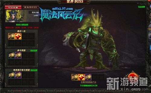想要挑戰(zhàn)更高難度的玩法?不如來試試37《魔法風(fēng)云紀(jì)》的世界BOSS,該玩法將于每日11:00,13:00,15:00,17:00,19:00開啟,活動(dòng)開啟時(shí)根據(jù)上一次擊打世界BOSS情況進(jìn)行刷新對(duì)應(yīng)等級(jí)BOSS,刷新后玩家可通過活動(dòng)面板的挑戰(zhàn)進(jìn)入場(chǎng)景擊打BOSS,世界BOSS會(huì)掉落珍貴的裝備,玩家對(duì)BOSS造成一定傷害后也可以獲得傷害檔次獎(jiǎng)勵(lì),每周累計(jì)一定傷害后可獲得每周傷害獎(jiǎng)勵(lì)。