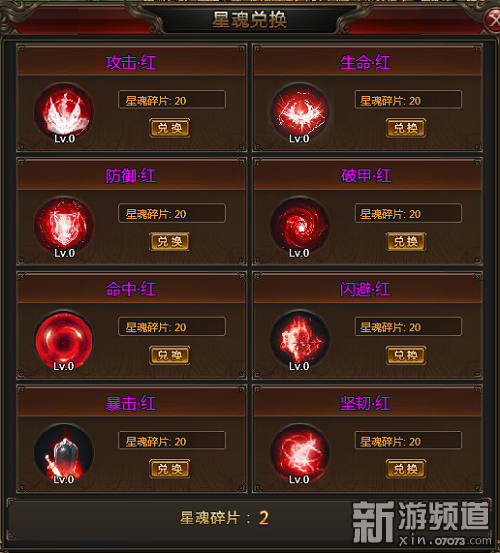 吞噬多余的星魂和星魂石可獲得魂力,魂力可用于升級星魂裝備,星宮命盤上共有12個星魂孔,注意不能裝備同種屬性的星魂。星魂顏色等級由低至高為綠、藍(lán)、紫、橙、紅,星魂顏色越高,裝備后提升的戰(zhàn)力更高,玩家提升星座等級即可開啟星魂孔位,紅色星魂需要收集足夠的星魂精魄進(jìn)行兌換。