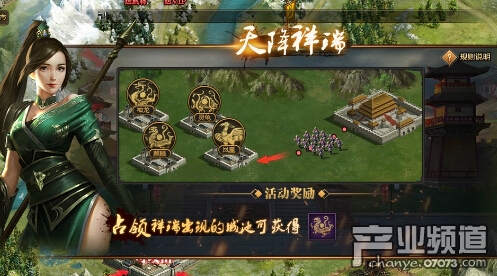 每天(除周六)20:00-20:30的這個(gè)時(shí)間段玩家天降祥瑞,紫氣東來(lái),祥瑞降于凡間,等待各路英雄前去挑戰(zhàn)?;顒?dòng)開(kāi)始后將會(huì)天降祥瑞于隨機(jī)城池。爭(zhēng)奪城池歸屬,活動(dòng)結(jié)束時(shí),城池歸屬?lài)?guó)的玩家可以領(lǐng)取城池上的祥瑞寶箱。活動(dòng)結(jié)束后30分鐘內(nèi)可領(lǐng)取祥瑞寶箱。