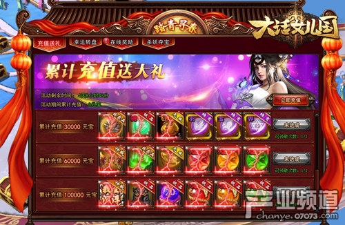 漫步在刀光劍影的大話世界,除了要擁有一套像樣的裝備武器,更重要的還是得有充分多的資源以便更好地修煉,提升角色實(shí)力。那么如何才能輕松獲得它們呢?即日起至4月9日,角色等級(jí)大于20級(jí)以上,進(jìn)入服務(wù)器時(shí)間大于7天的老玩家們,只需在《大話女兒國》中達(dá)到一定充值金額,即可將海量實(shí)用獎(jiǎng)勵(lì)盡收囊中。