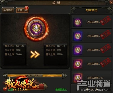 玩家到達(dá)50級就可開啟成就系統(tǒng),可以通過登錄、升級、殺怪、擊殺boss、升級翅膀、完成副本、與玩家PK等方式來完成成就,獲得成就積分,獲得的積分可用于升級成就勛章。成就勛章可以增加物理攻擊、魔法攻擊、道術(shù)攻擊、生命值、魔法值屬性。成就積分的獲得可以通過快速購買(商城購買)或者活動掉落。